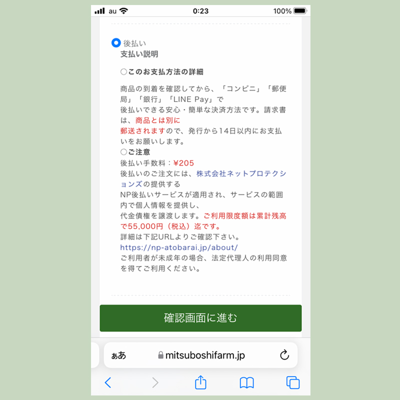 今回は、「後払い」や「支払い方法の変更」もやってみたので