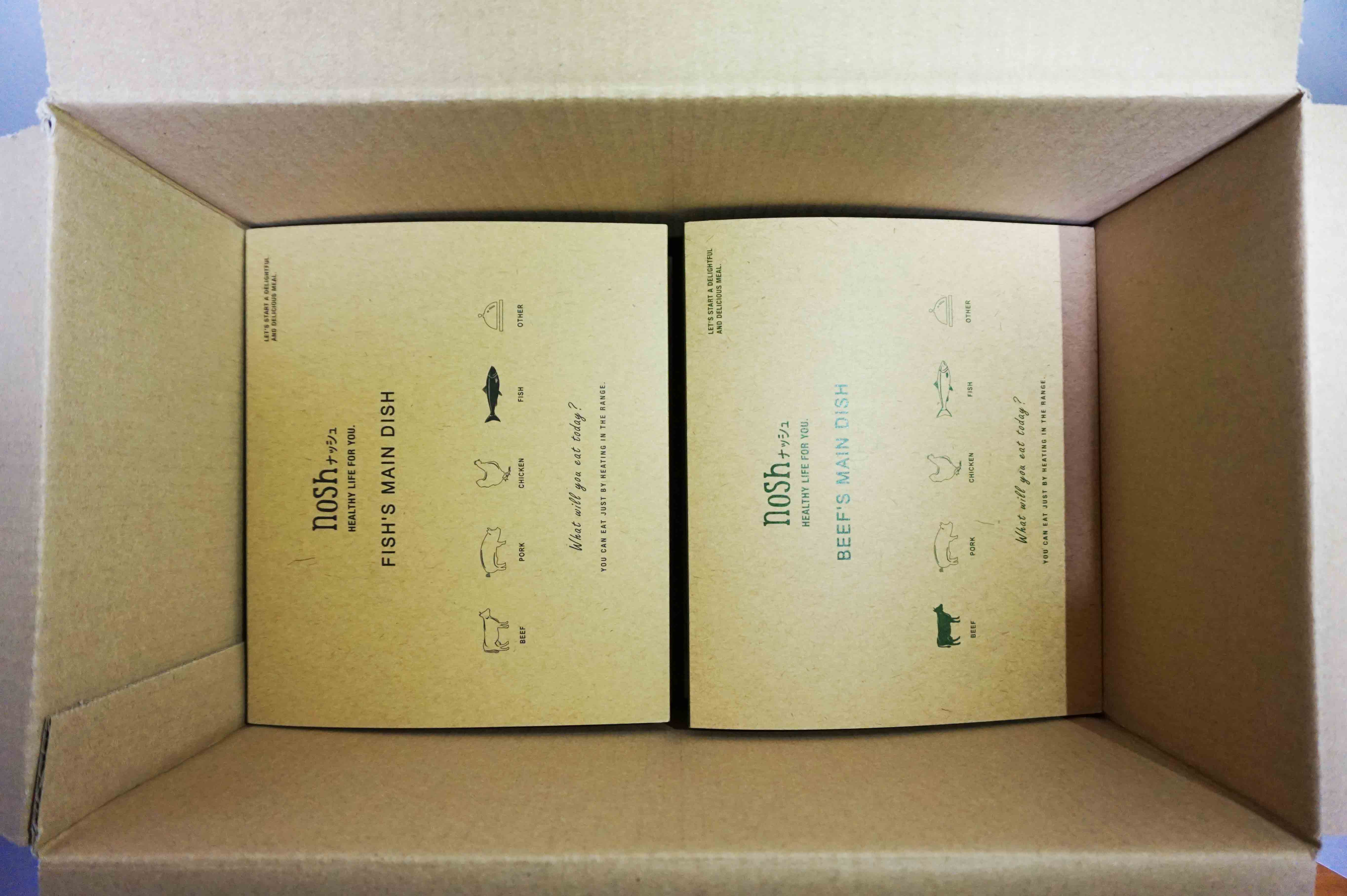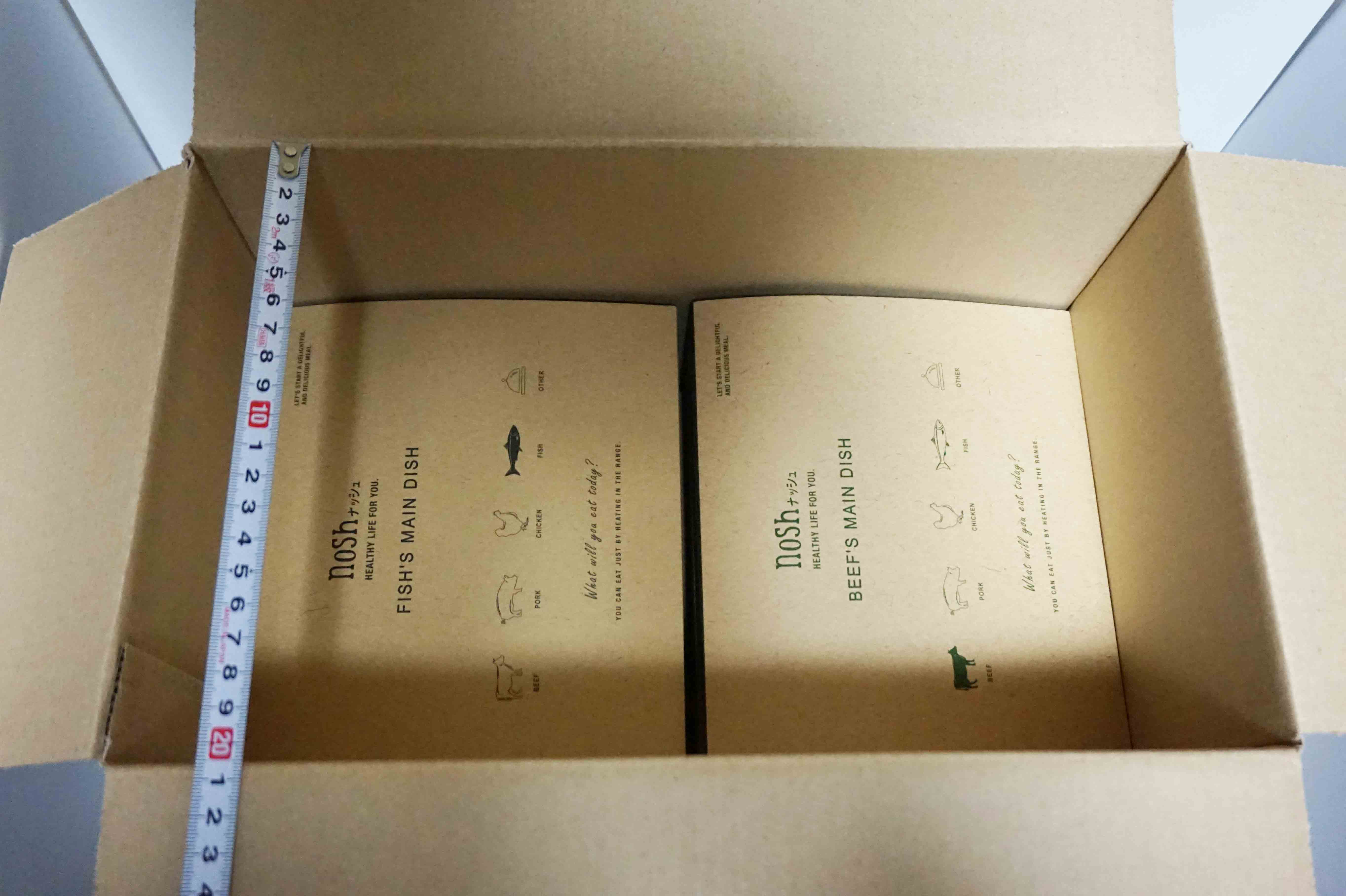 noshのお弁当を2つ並べてぴったりサイズのダンボール。