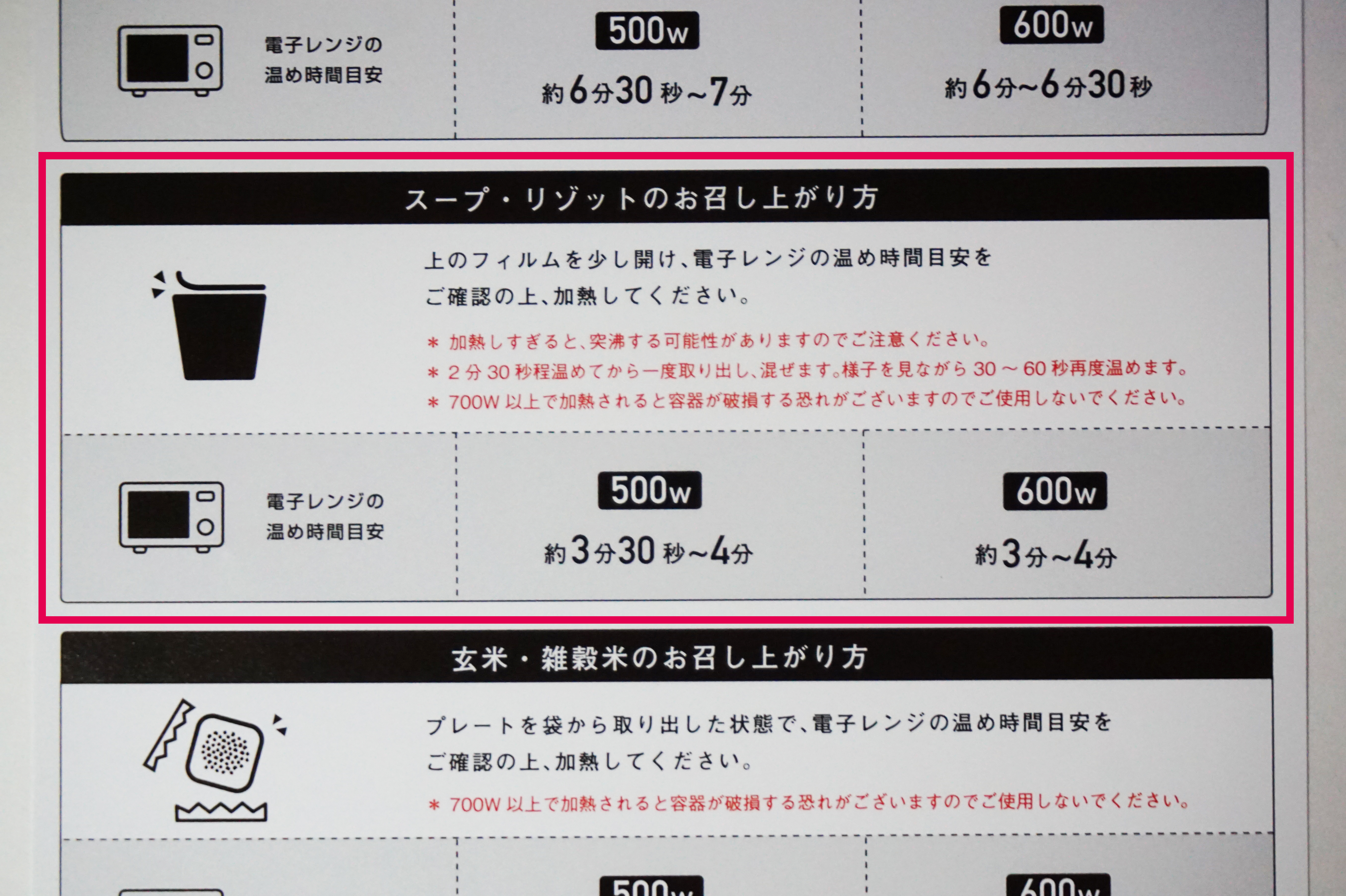 そしてもう1つ、調理方法の紙に書かれていたのが「6分30秒」という温め時間。
