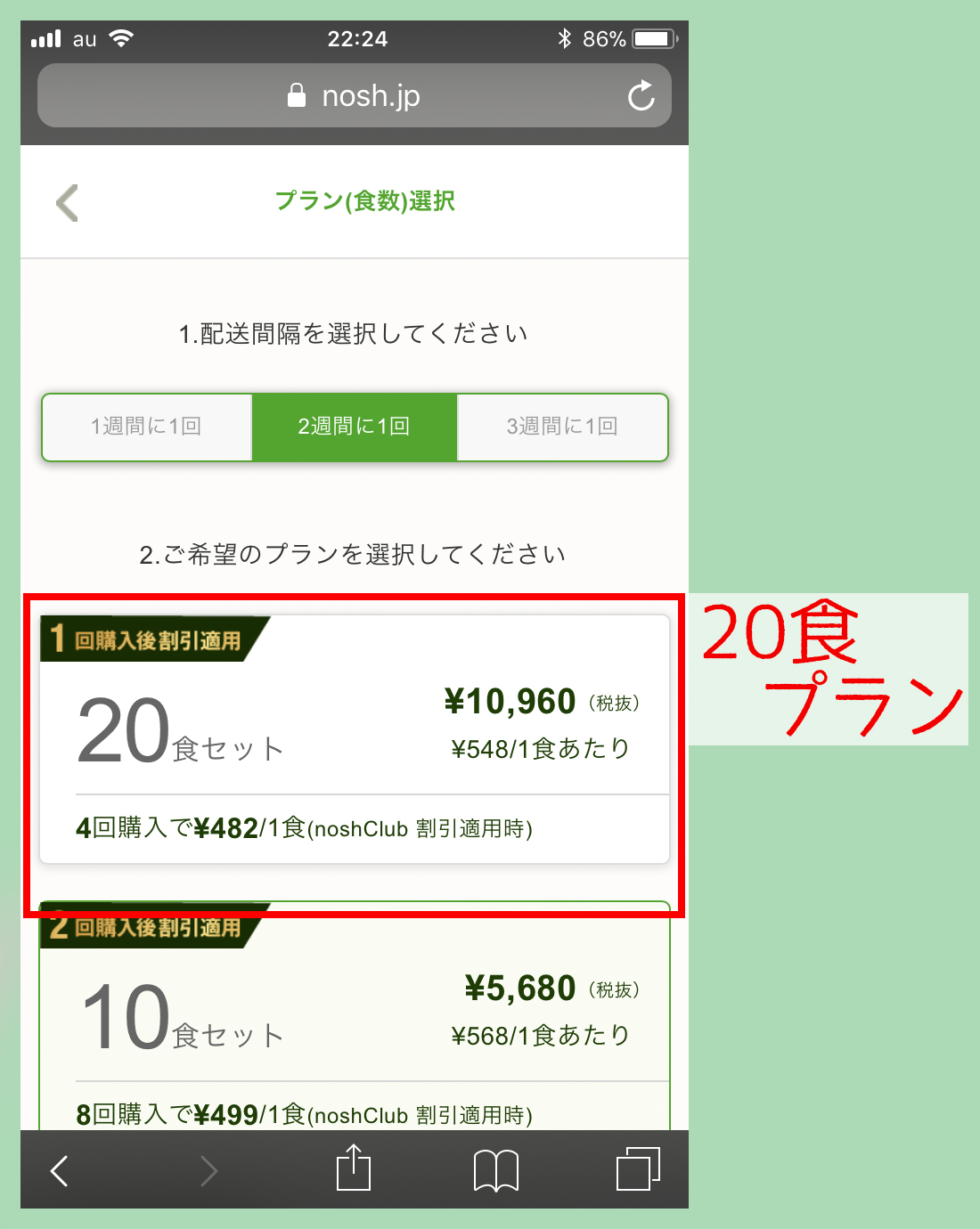 それに200円ぐらいプラスするだけで20食を配送してもらえることがわかります。