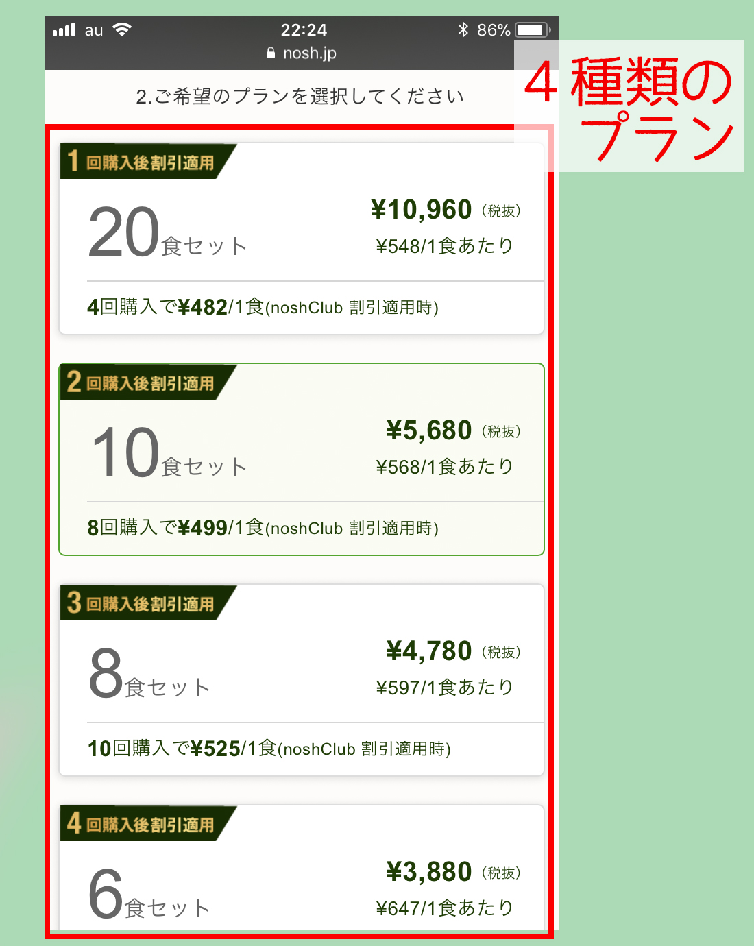 購入数が増えていくとnosh clubの割引がどんどん大きくなっていくので、