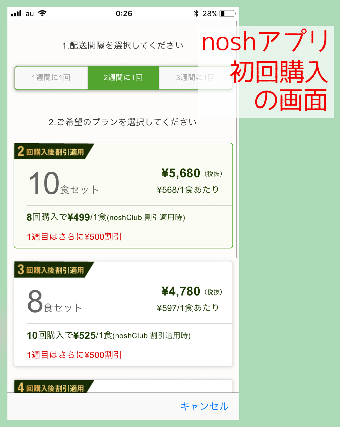 nosh(ナッシュ)アプリで2回目以降購入する場合
