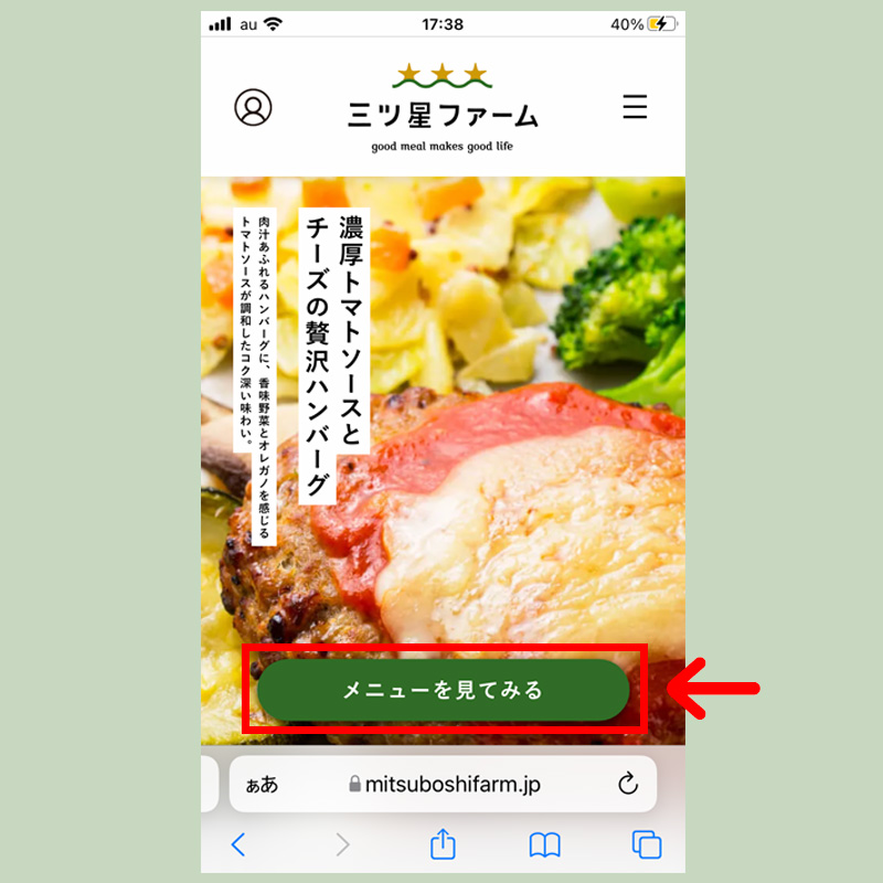 公式サイトのトップページから「メニューを見てみる」をクリックして↓