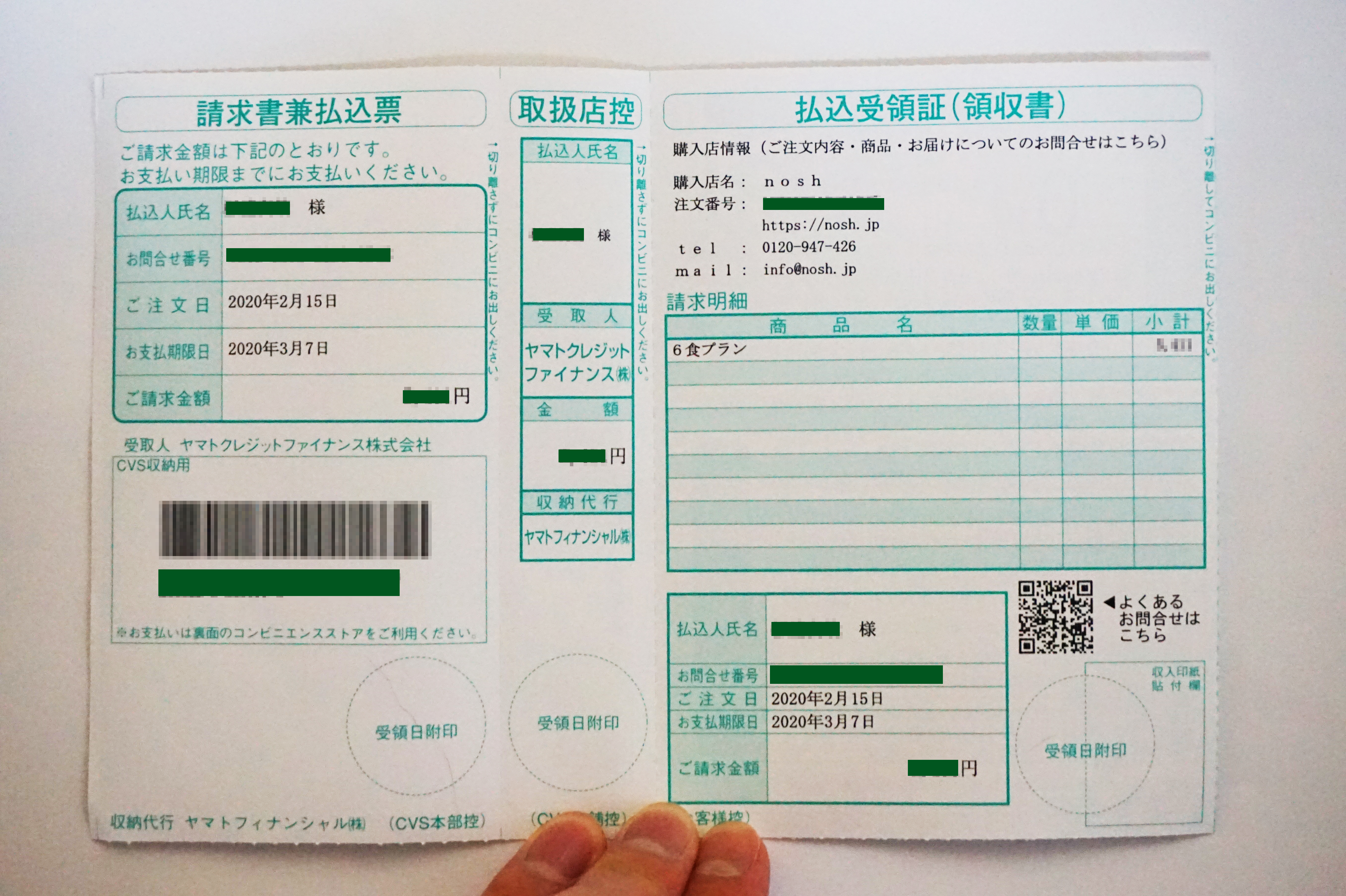nosh(ナッシュ)の支払い方法3:"後払い" で購入してみた実際の様子