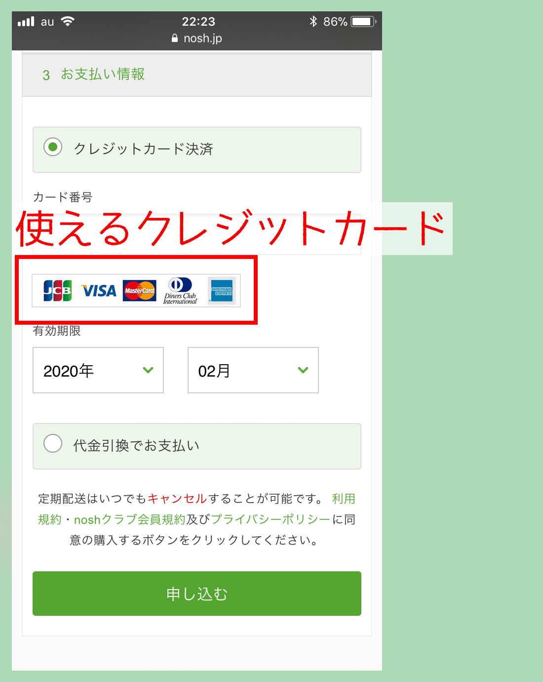 nosh(ナッシュ)の支払い方法1:クレジットカード決済