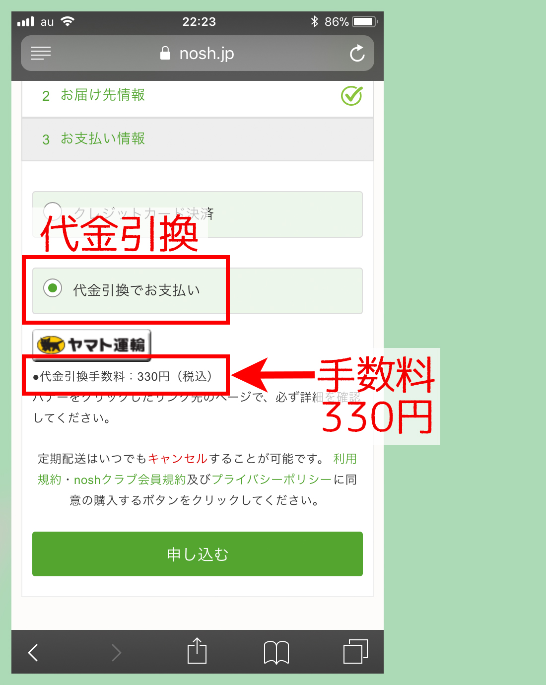 nosh(ナッシュ)初回購入で選べる2つの支払い方法